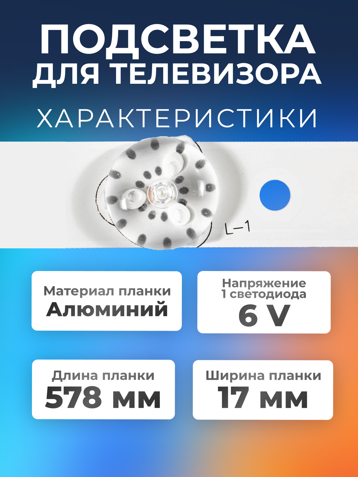 Подсветка MS-L2082 V2 для телевизора Hi VHIT-32H169MS, BBK 32LEM-1043, 32LEX-7143, 32LEX-5043, Digma DM-LED32MQ10 / 32" 6V 6 led (комплект 2 шт) 578mm информация: