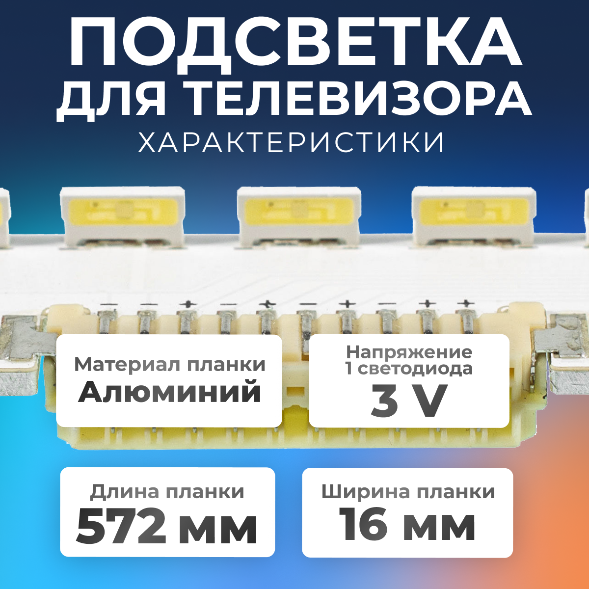 Отзывы на Подсветка для телевизора Samsung UE46ES6100, UE46ES6307U, UE46ES6100W, UE46ES6557U, UE46ES6727U и др 46" 3V 60 led (комплект 2 шт) 572mm
