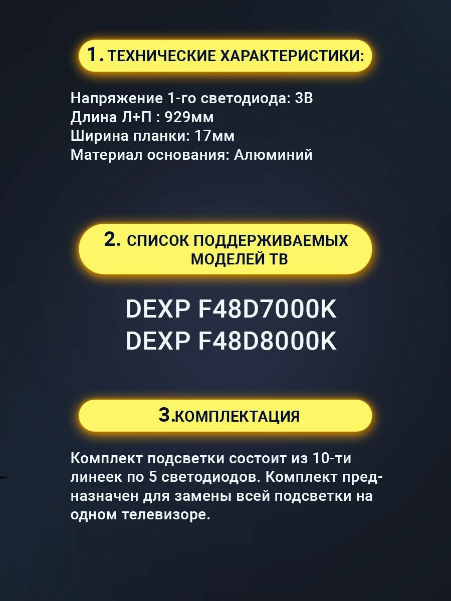 10 цен на Подсветка для ТВ Dexp F48D7000K Dexp F48D8000K маркировка JL.D48052235-083AR-F JL.D48052235-083AL-F (комплект)