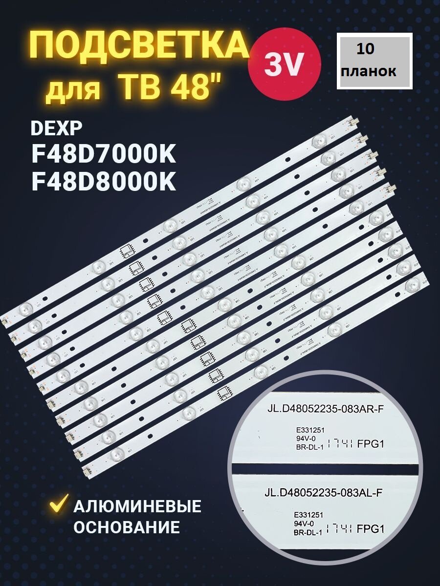 Подсветка для ТВ Dexp F48D7000K Dexp F48D8000K маркировка JL.D48052235-083AR-F JL.D48052235-083AL-F (комплект) информация: