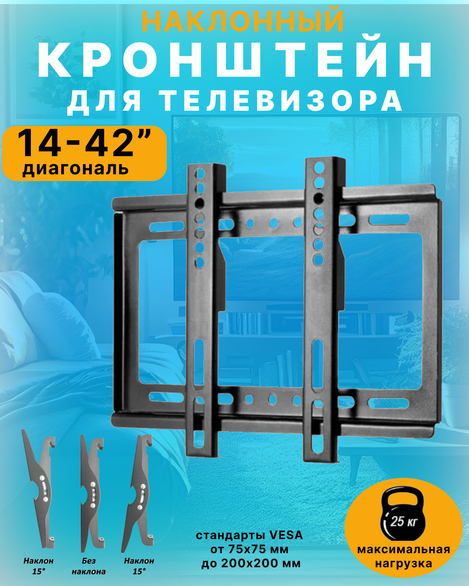 Кронштейн на стену Орбита для телевизоров 14-42 дюйма, наклонный информация: