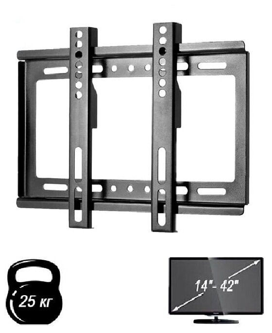 Кронштейн для телевизора настенный для телевизоров/мониторов от 14" до 42" с грузоподъёмностью до 25 кг. VESA (75x75;100x100;200x100;200x200mm)