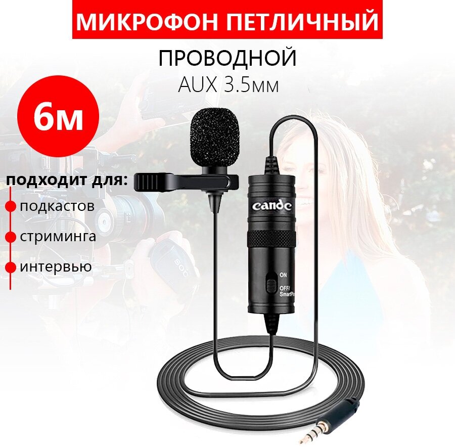 10 цен на Микрофон петличный, проводной, конденсаторный Candc DC-C1 AUX 3.5 мм для стриминга, подкастов, записи голоса на телефон, компьютер, ноутбук, камеру