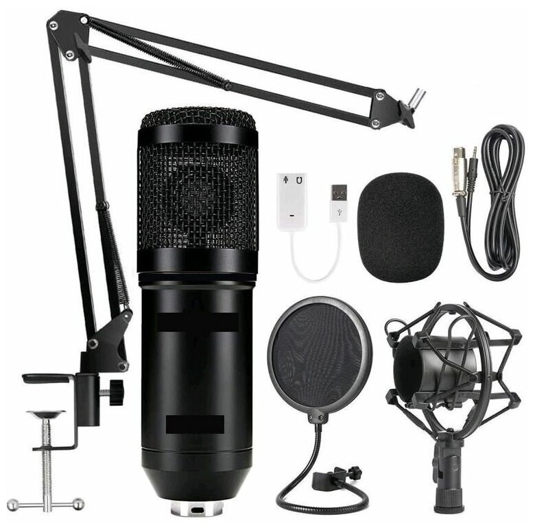 10 цен на Микрофон студийный конденсаторный BM 800 белый / С Поп фильтром / креплением к столу / XLR кабелем / USB звуковой картой