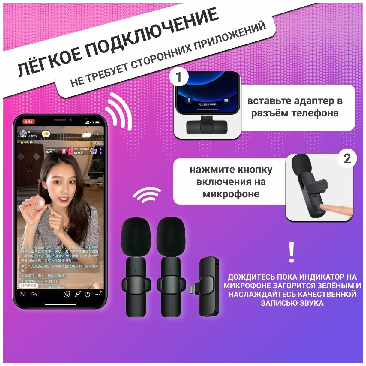 Отзывы на Беспроводной петличный микрофон для iPhone для записи звука и видео, петличка для айфона с Lightning, Universal-Sale