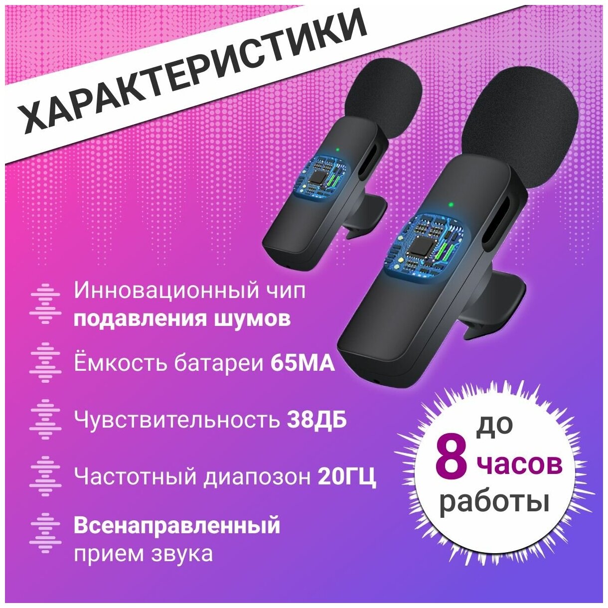 | Особенности | шумоподавление |