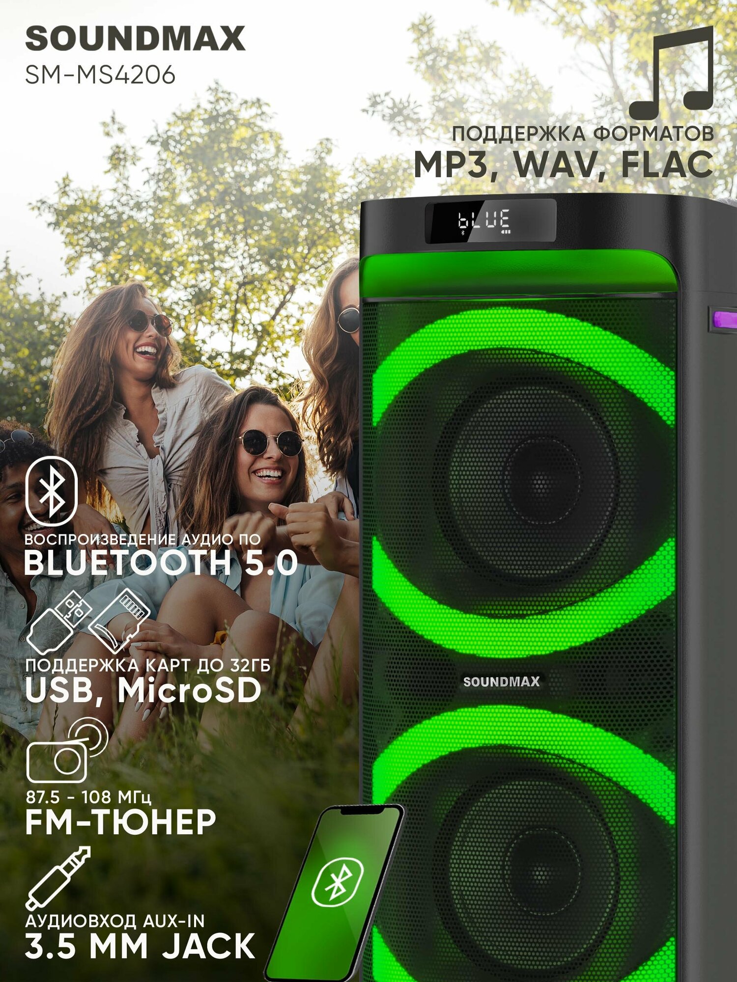 Музыкальный центр SOUNDMAX SM-MS4206(черный) информация: