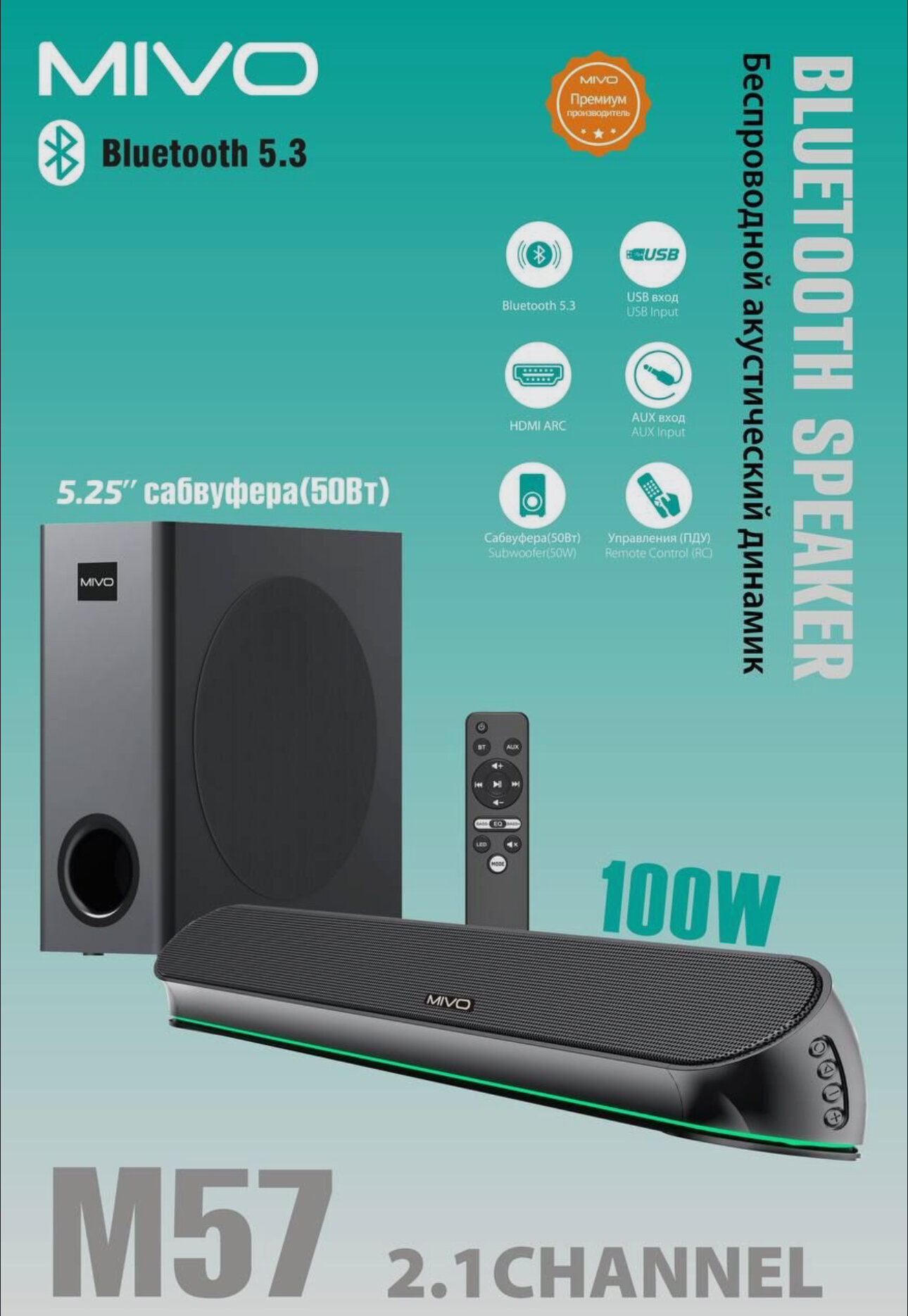 Беспроводной саундбар Mivo с сабвуфером - M57 информация: