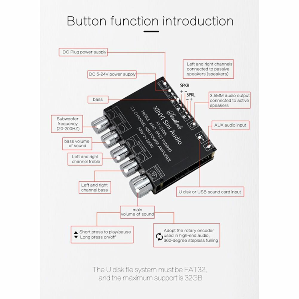 Усилитель мощности звука, Bluetooth 5.0, XY-S100L 2.1 50WX2+100W - цифрой усилитель мощности высоких и низких частот сабвуфер. информация: