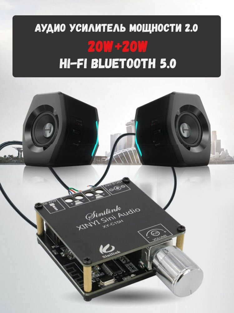Усилитель мощности звука с Bluetooth 5.0 XY-C15H 20WX2 Цифровой усилитель звука для домашних стерео систем и автозвука информация: