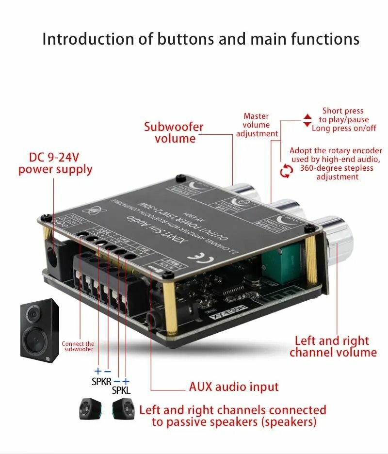 Отзывы на Усилитель мощности звука для колонок 2.1 15WX2+30W на сабвуфер / amplifier XY-E30H