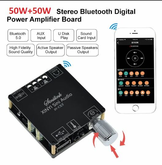 Отзывы на Усилитель мощности звука с Bluetooth 5.0 XY-C50L 50WX2 Цифровой усилитель звука для домашних стерео систем и автозвука