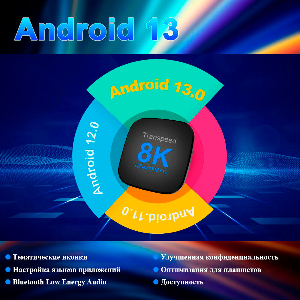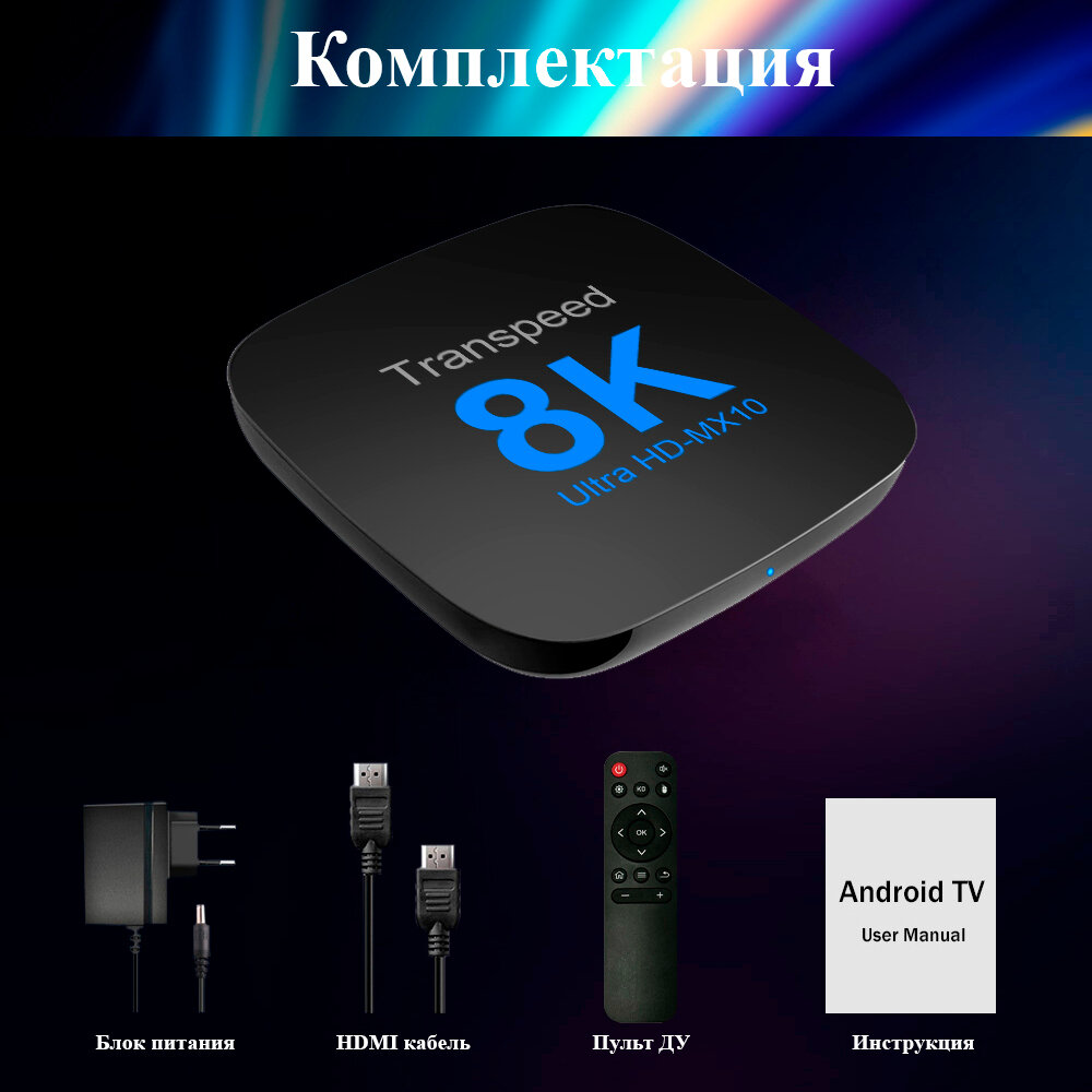 10 цен на Смарт ТВ приставка Transpeed 8K, 2+16 Гб, Android 13, Rockchip RK3528, Wi-Fi, Bluetooth