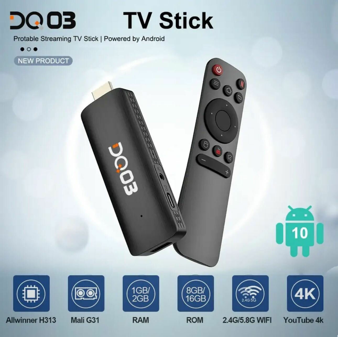 10 цен на Смарт ТВ Приставка DQ03 TV Stick H313 2/16GB Smart TV Box Allwinner H313 4K@60fps HDR10 + H.265 Mali-G31 VP9 10 Android Wi-Fi 2.4/5GHz Bluetootch 4.0 Андроид ТВ Бокс, Медиаплеер