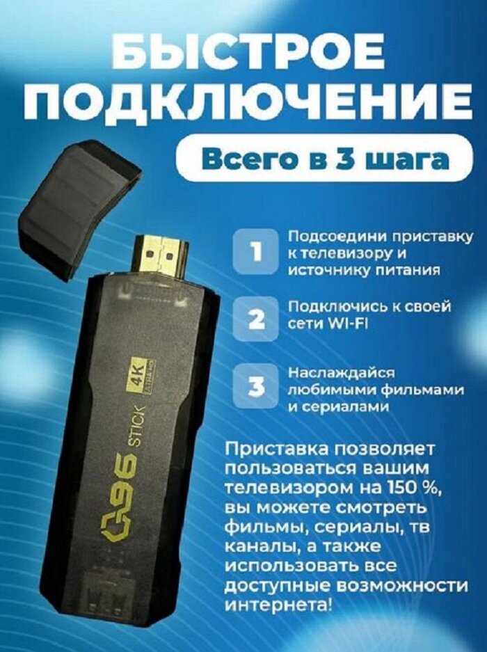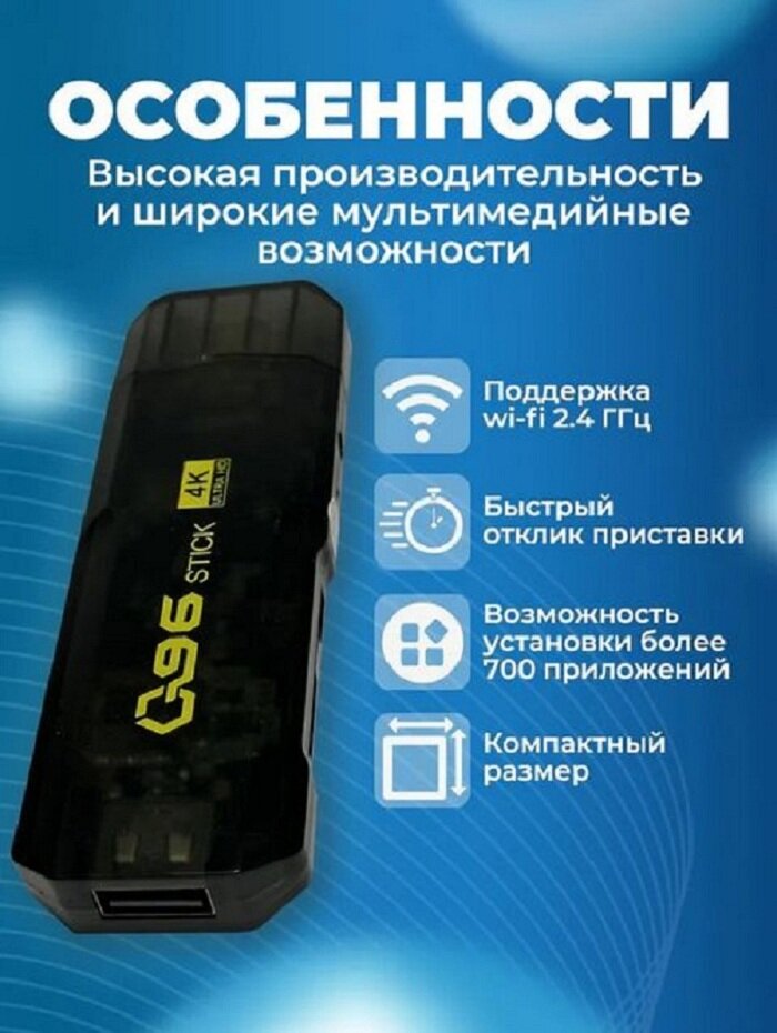 Смарт-ТВ Приставка 96 stick 8/128 гб с поддержкой Ultra HD, на платформе Android 11.1 информация:
