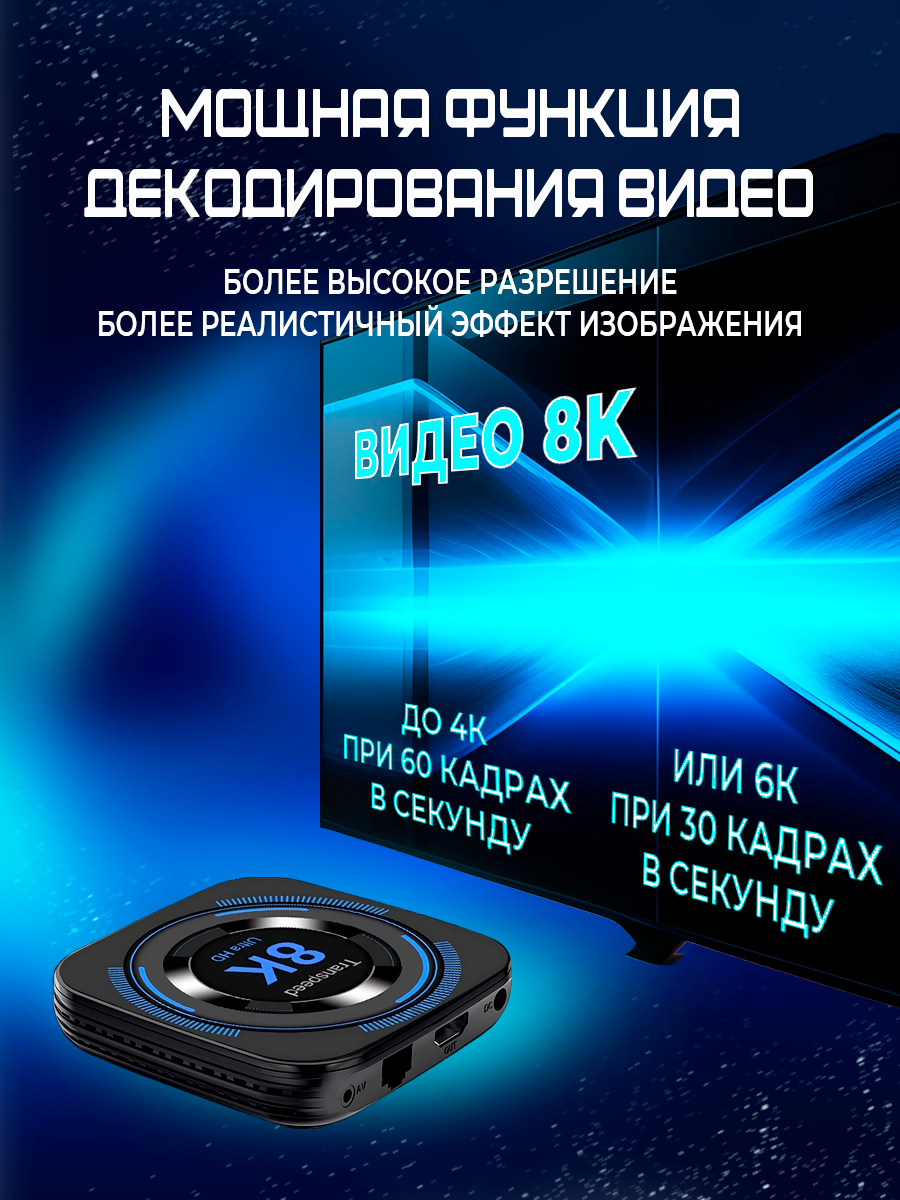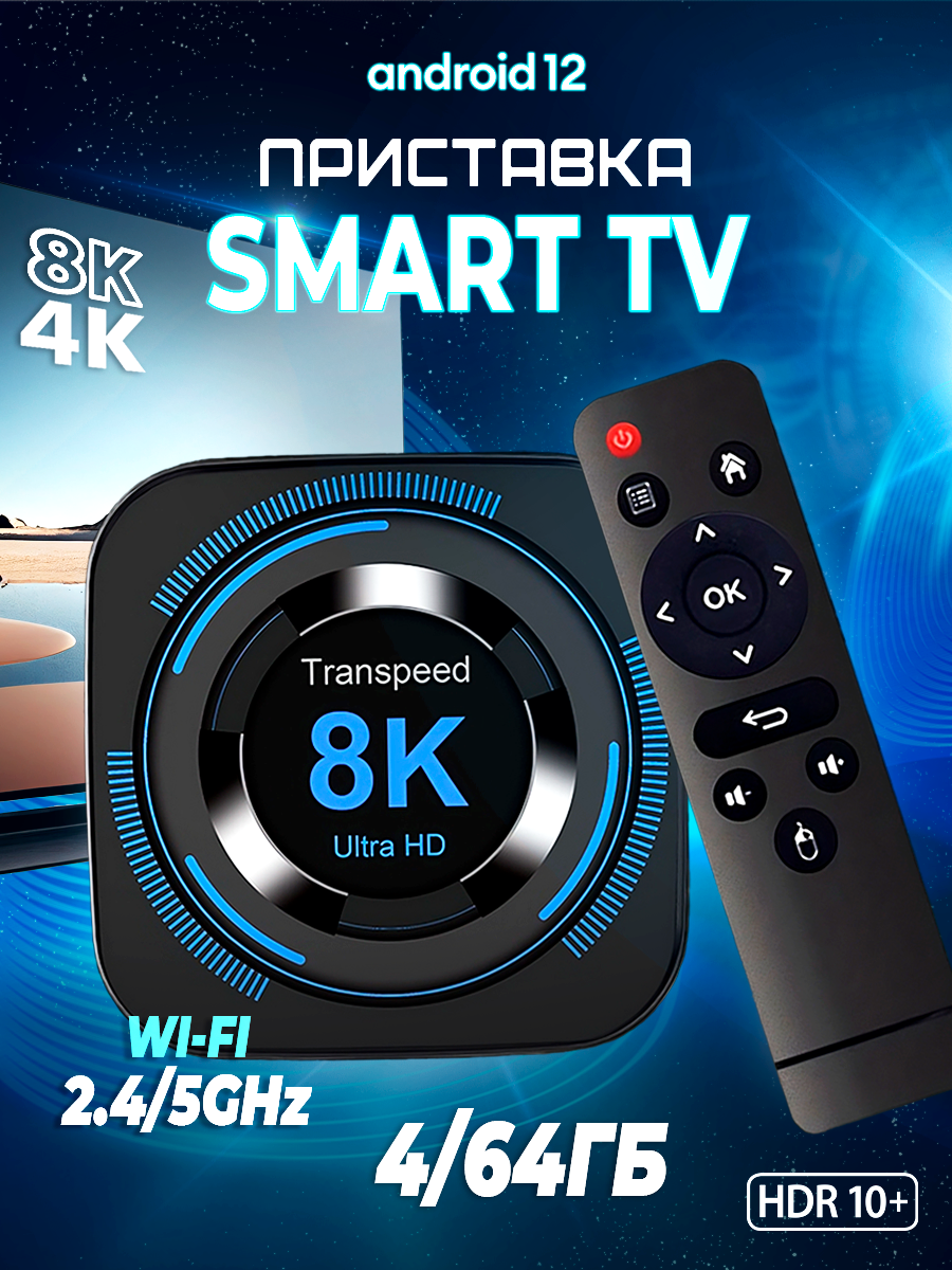 Смарт ТВ приставка "Transpeed 8K" с голосовым управлением 4/64 Гб