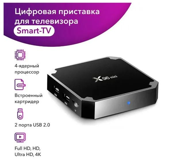 Смарт ТВ приставка X96mini с процессором S905w2 и памятью 2/16Гб информация: