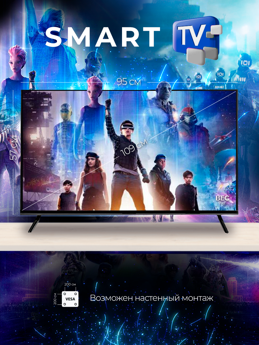 Смарт телевизор SmartTV 43"(109см) FullHD информация: