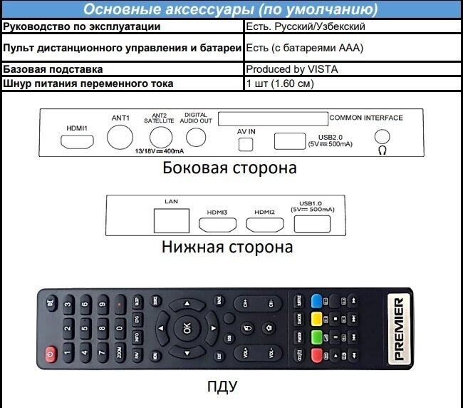 | Разъемы и интерфейсы | Ethernet - RJ-45 / USB Type-A x 2 / вход HDMI x 3 / выход на наушники / слот CI/CI+ |