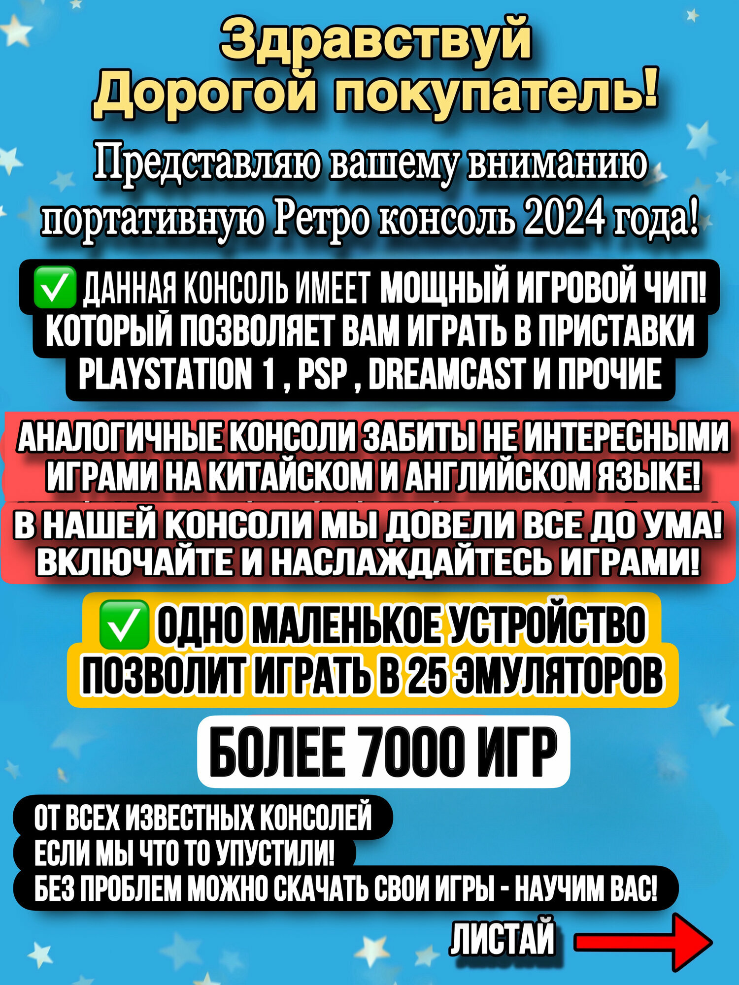 0 отзывов, средняя оценка 0. Чтобы купить «Игровая приставка U9 pro PlayStation 1 портативная консоль PSP Sega Nintendo» по лучшей цене мы сканируем авито, алиэкспресс, маркет, озон, савеловский, плеер, горбушку, беру, официальные сайты и находим минимальную. Администрация не несет ответсвенность актуальность цен на Игровая приставка U9 pro PlayStation 1 портативная консоль PSP Sega Nintendo, более подробно узнавайте на сайте магазина.