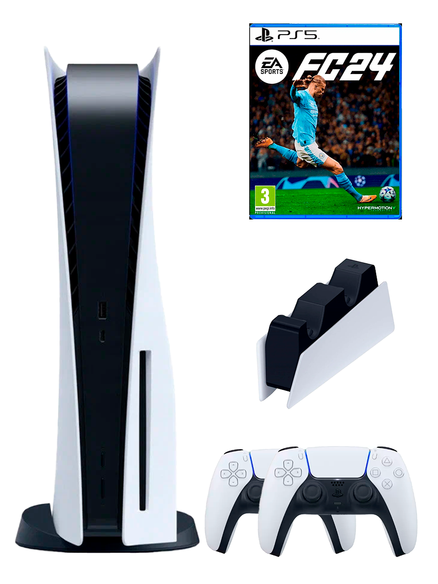 10 цен на PS5 (ПС5) Игровая приставка Sony PlayStation 5 ( 3-я ревизия) + 2-й геймпад(белый) + зарядное +Fifa24