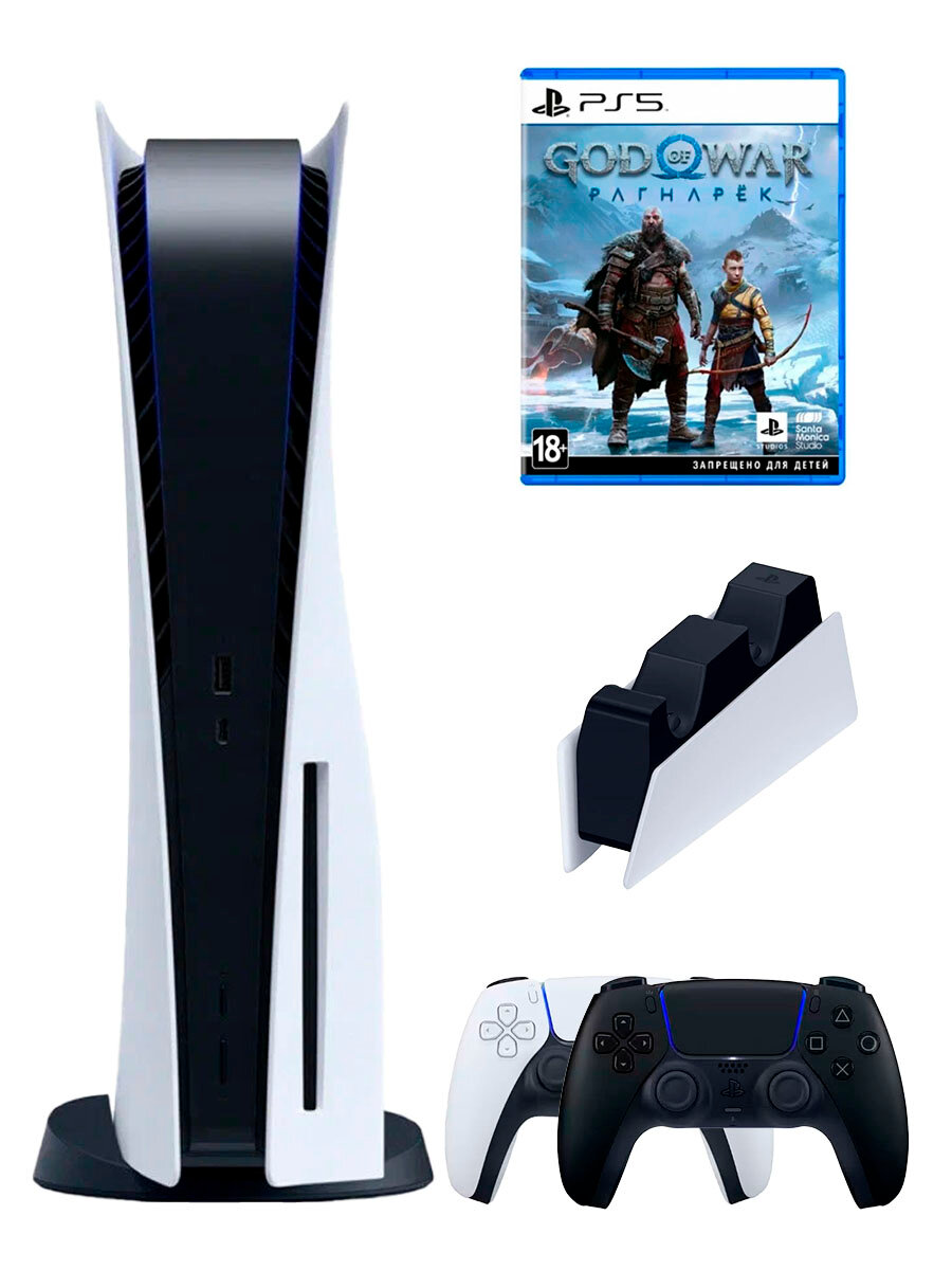 10 цен на PS5 (ПС5) Игровая приставка Sony PlayStation 5 ( 3-я ревизия) + 2-й геймпад(черный) + зарядное + игра God of War