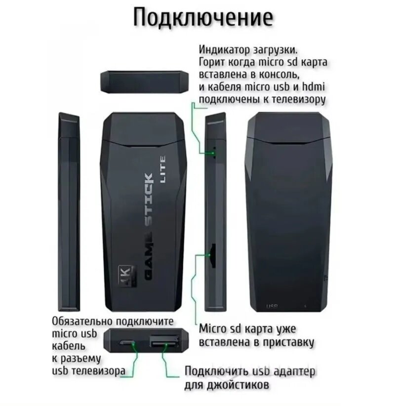 Игровая приставка Game Stick Lite 128 GB 4K, 15000 Ретро Игр для телевизора, портативная приставка информация: