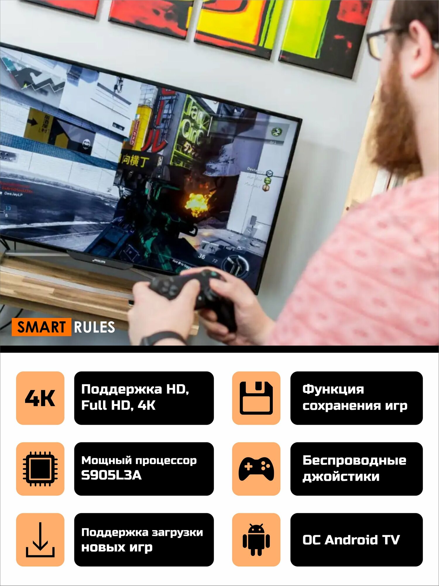 | Дополнительная информация | Игровая консоль с 30000 игр и Android Smart TV приставка |