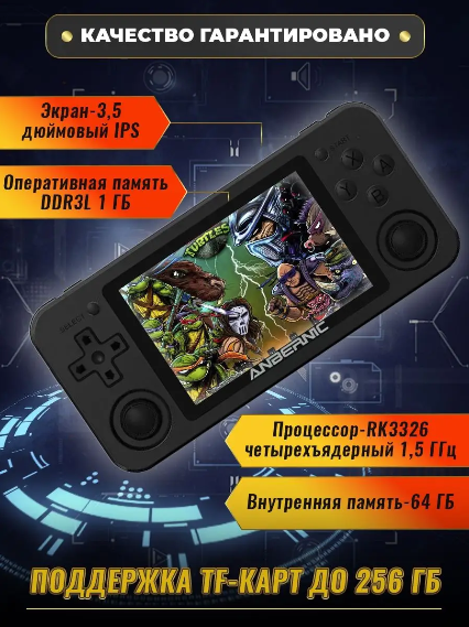 | Дополнительная информация | Процессор RK3326 1.5 ГГц. Комплектация: Консоль, упаковка, кабель для зарядки, инструкция |