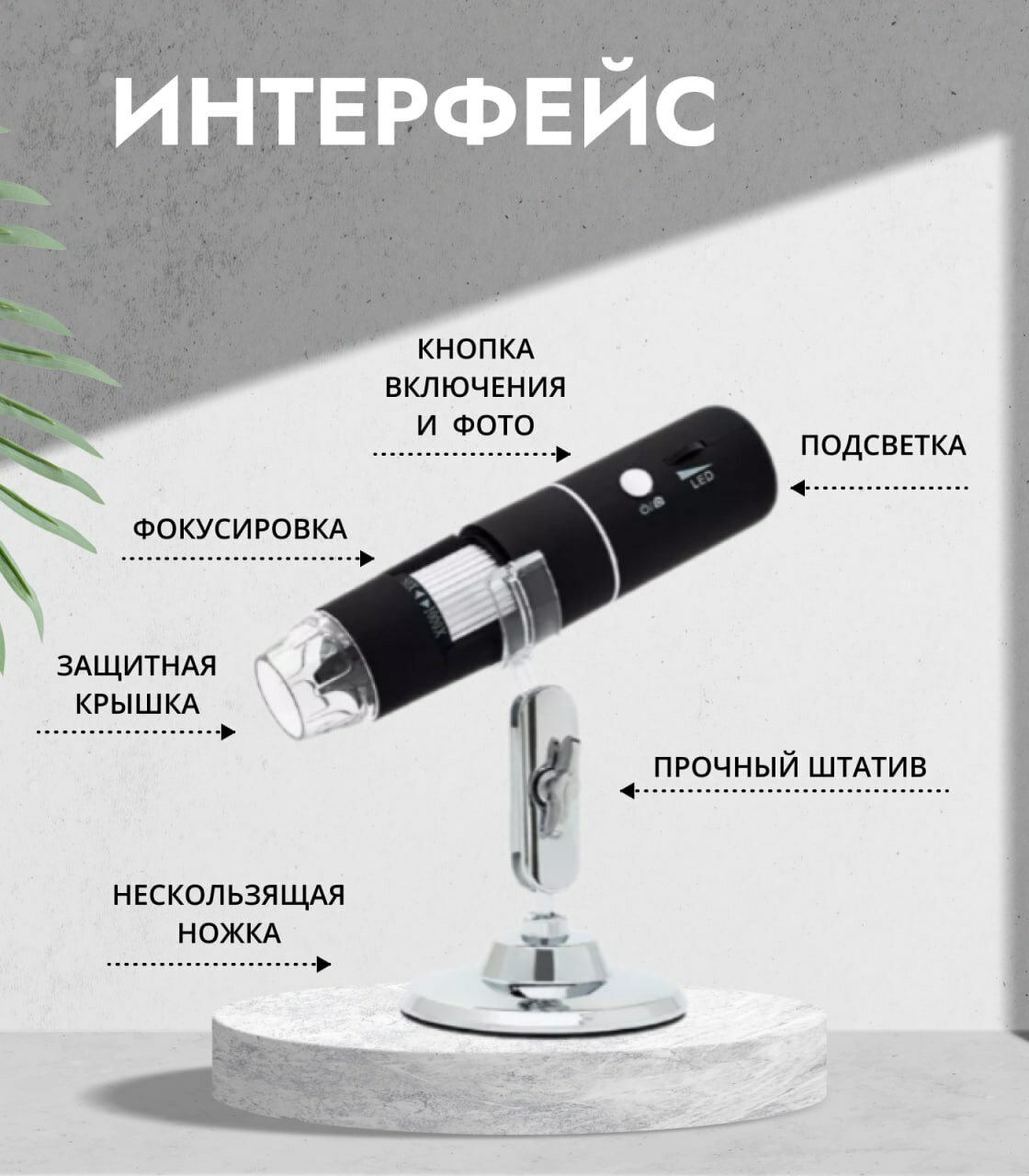 Цифровой беспроводной микроскоп трихоскоп 1000X Wi-Fi, Черный информация: