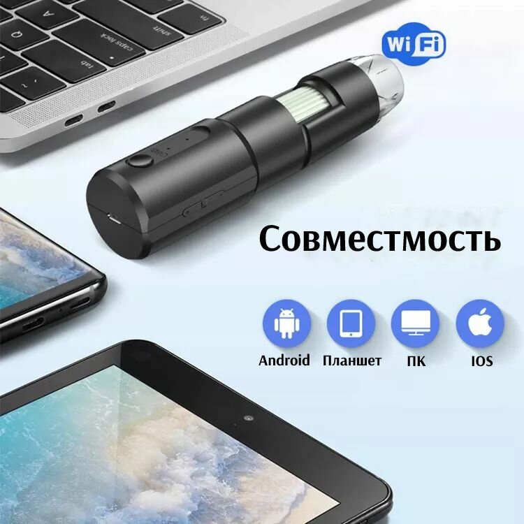 Беспроводной цифровой Wi-Fi микроскоп HD 1000Х с приложением на Android и ios информация: