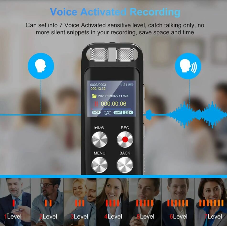 Диктофон Savetek с голосовой активацией, USB-ручка, шумоподавление, Hifi MP3-плеер, диктофон, запись 50 часов, 1536 кбит/с, PCM, Wav