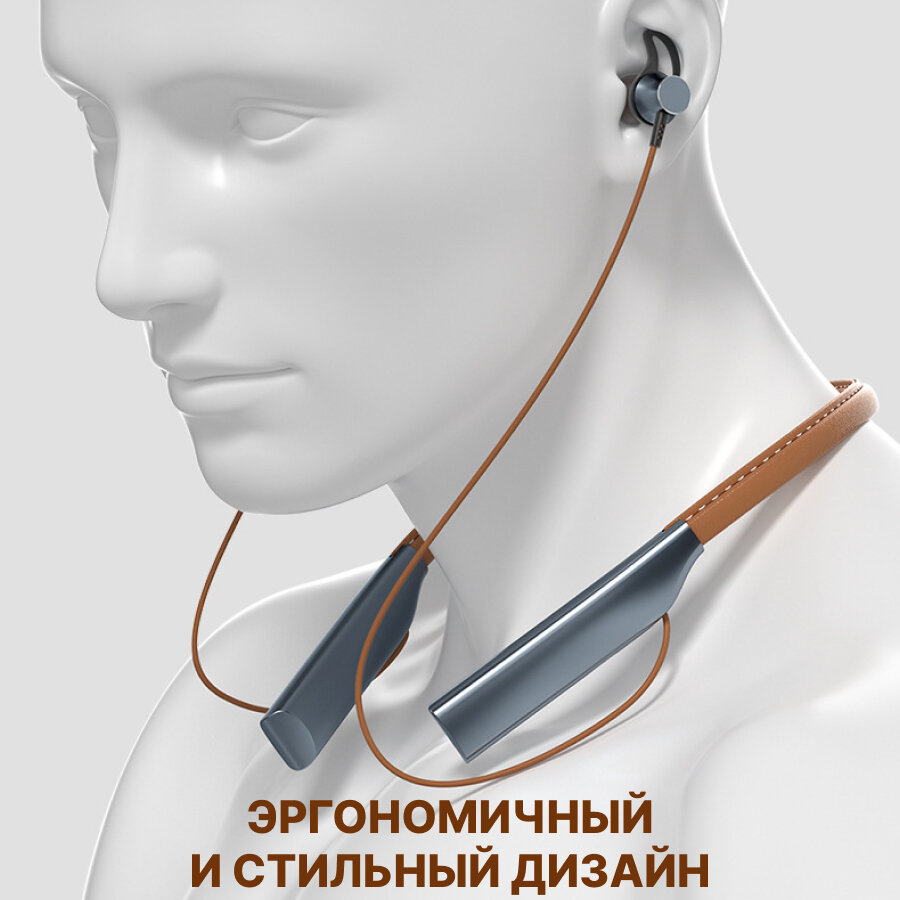 Наушники беспроводные с микрофоном спортивные блютуз гарнитура для бега на шею (BT коричневый) информация: