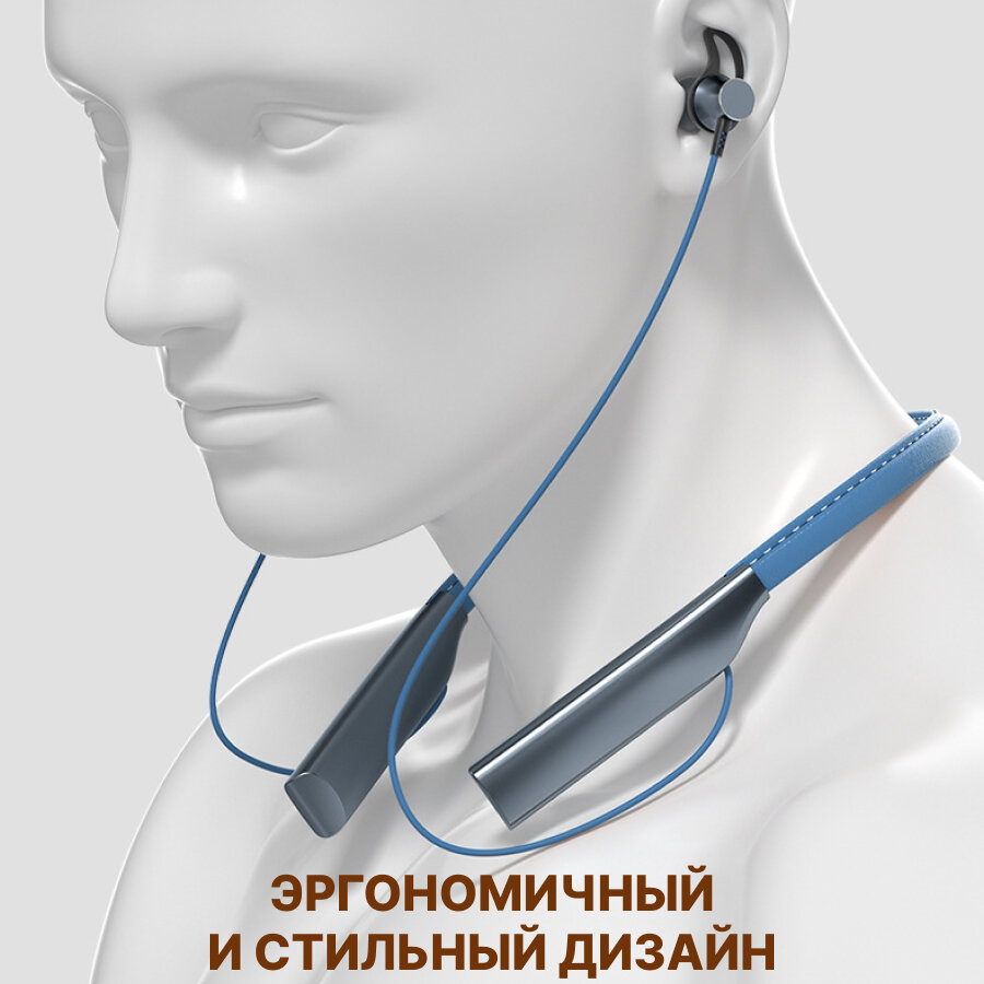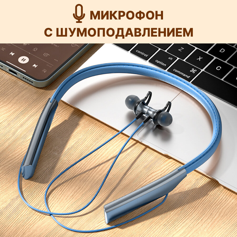 Наушники беспроводные с микрофоном спортивные блютуз гарнитура для бега на шею (BT голубой) информация: