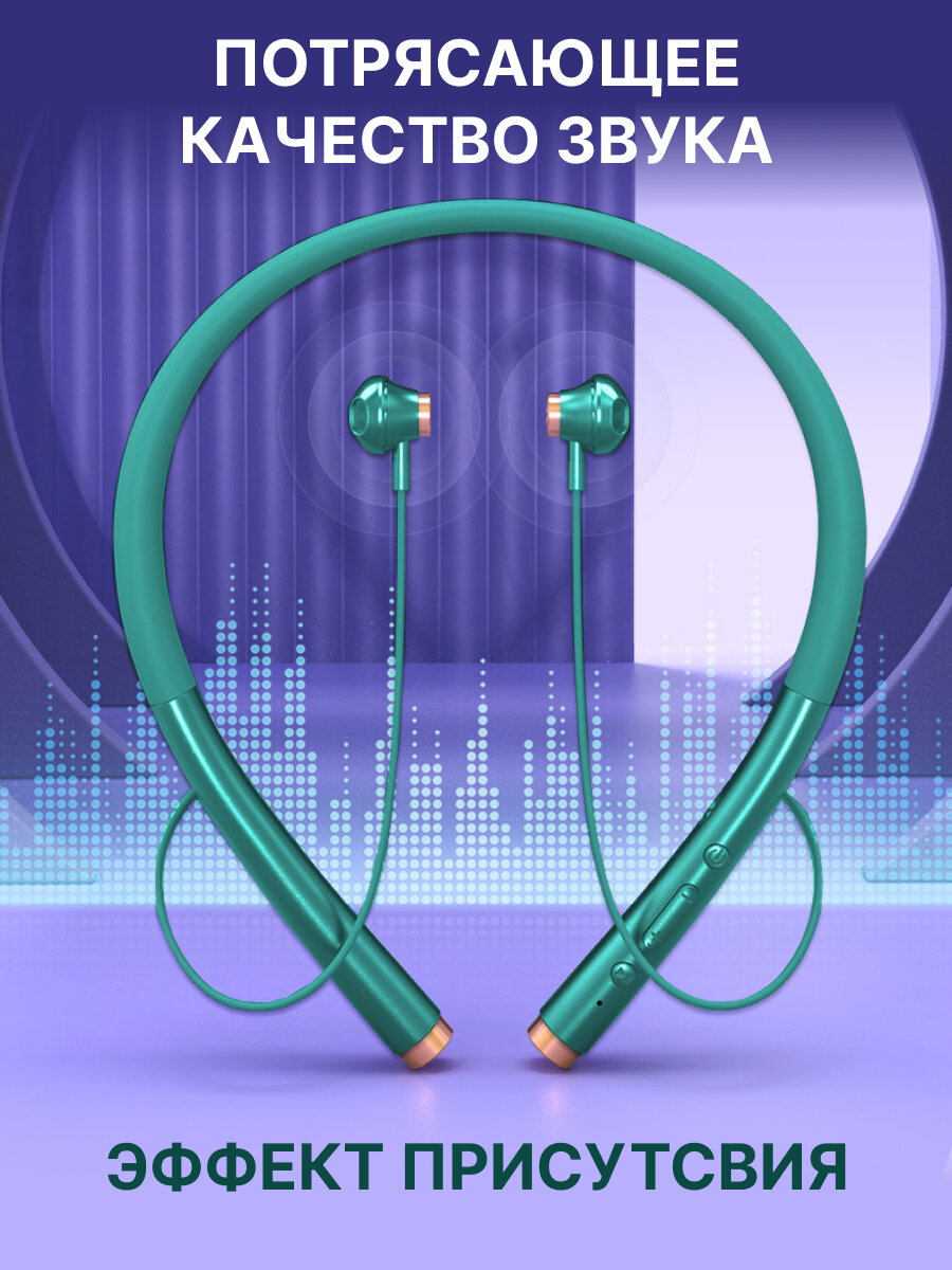 10 цен на Наушники беспроводные блютуз с микрофоном спортивные для бега на шею (WI зеленые)