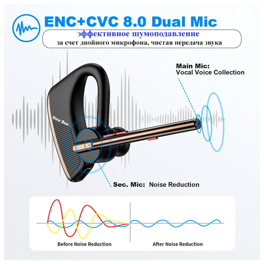 Беспроводная Bluetooth гарнитура New Bee (LC-M50) с шумоподавлением и русскоязычными уведомлениями информация:
