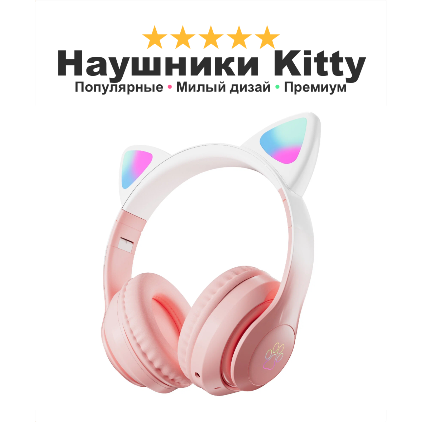 10 цен на Наушники беспроводные светящиеся с ушками кошки для детей девочек мальчиков Kitty Pretty Pro, ушки блютус, розовые
