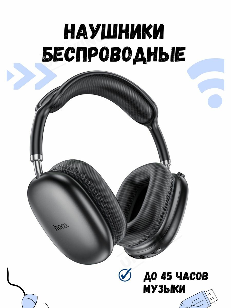 Беспроводные наушники c эффектом снижения шума Hoco W35 Max / BT 5.3 + поддержка 3.5mm AUX и TF card / 90 часов музыки (черные) 1 699 ₽