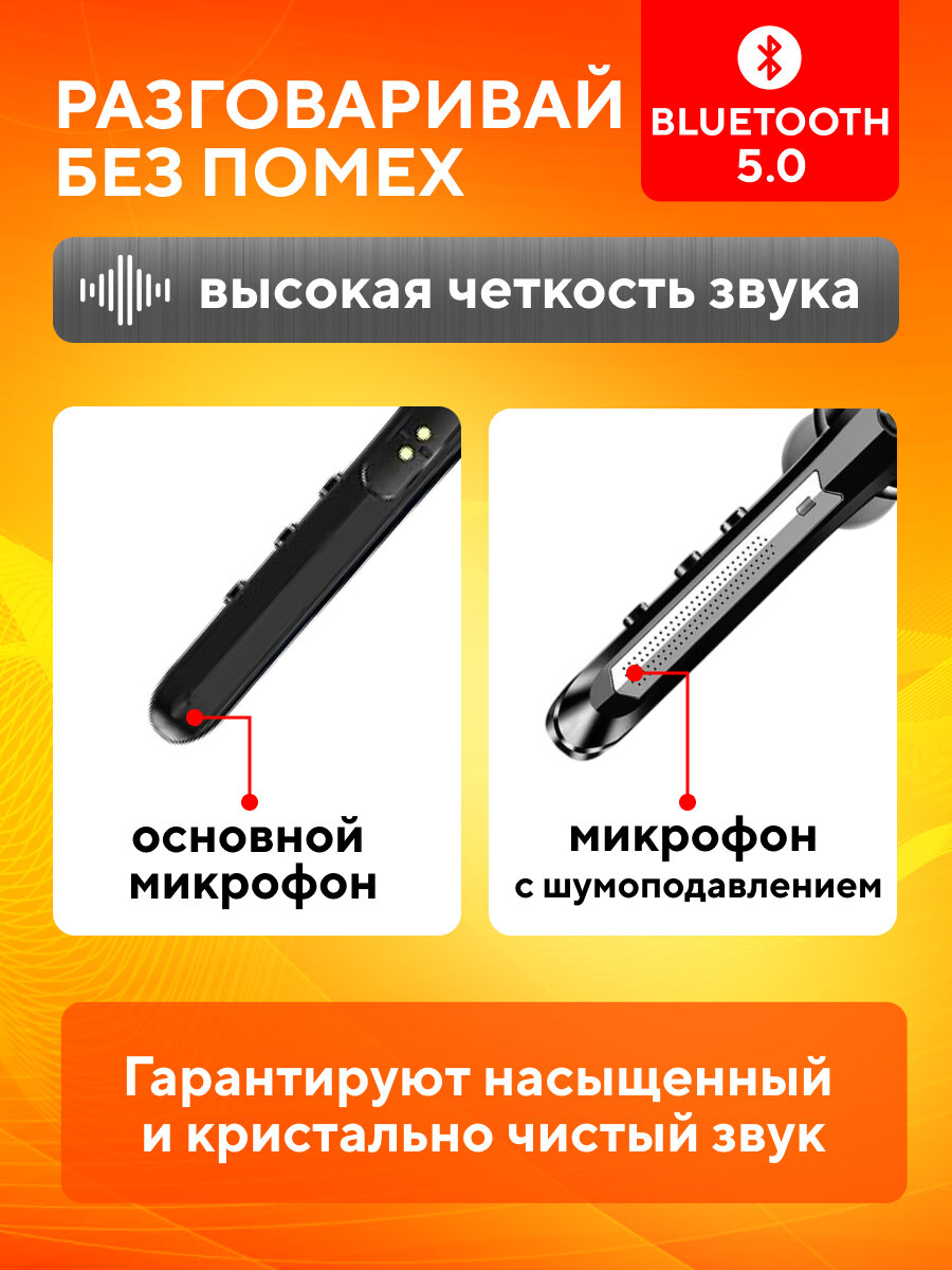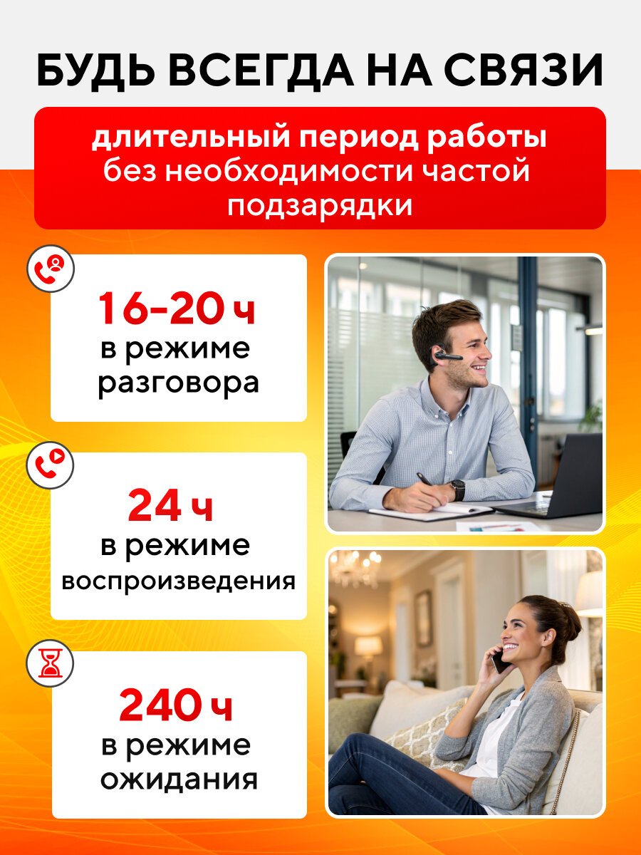 Гарнитура наушник беспроводная TAYMLUX HSP-B3 Бизнес-класса, Bluetooth v5.0 с микрофоном, 16 часов в режиме разговора, для 2-х телефонов, черная информация: