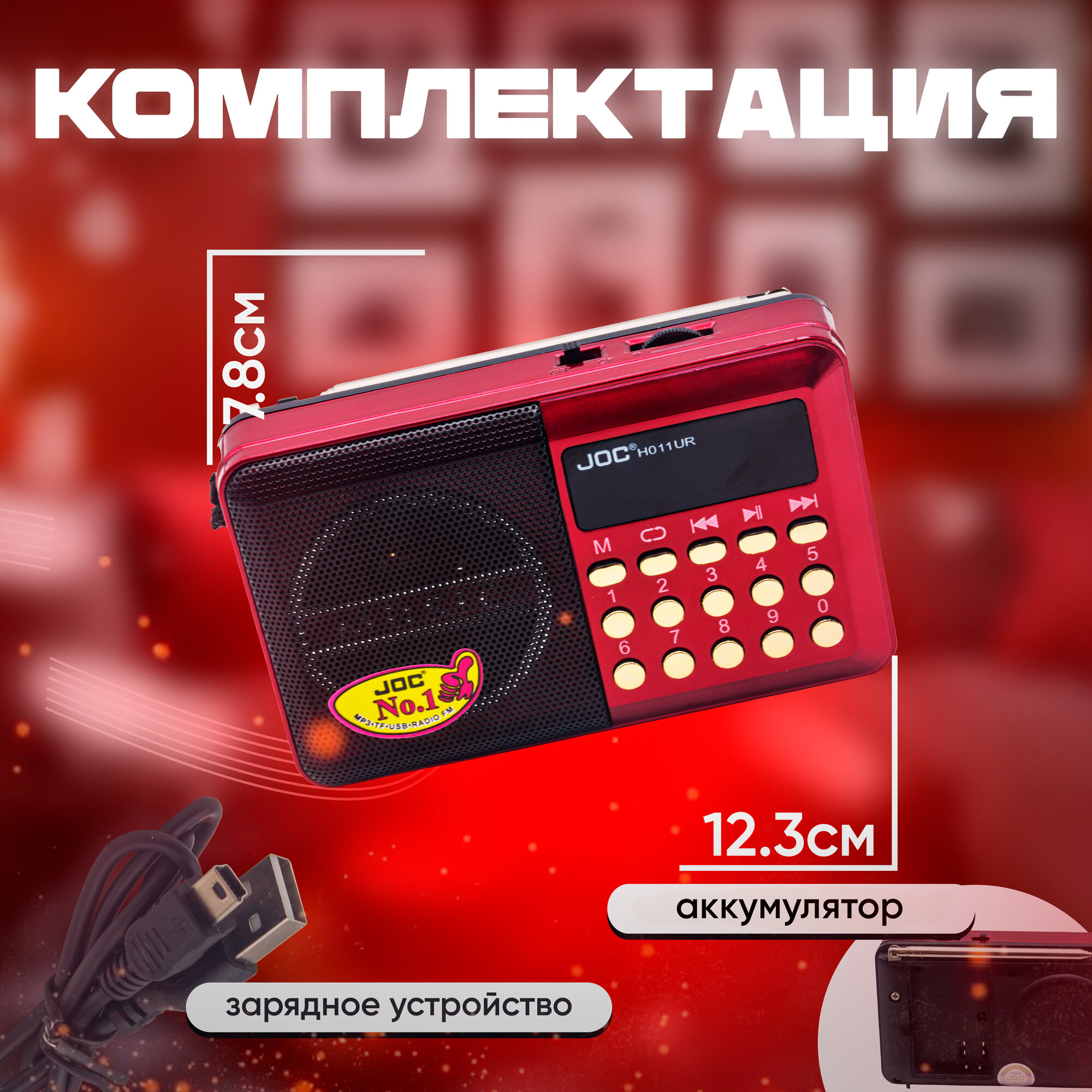 Радиоприемник JOC H011UR USB/SD/microSD/FM красный информация: