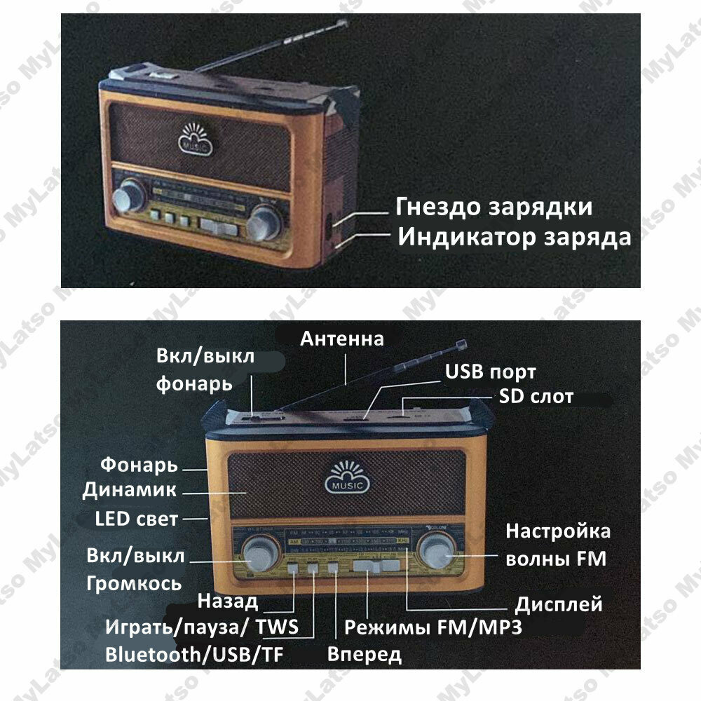 Ретро радиоприемник Bluetooth FM USB MP3 TF SD, MyLatso портативный радио плеер с работой от аккумулятора, батарейки или сети информация: