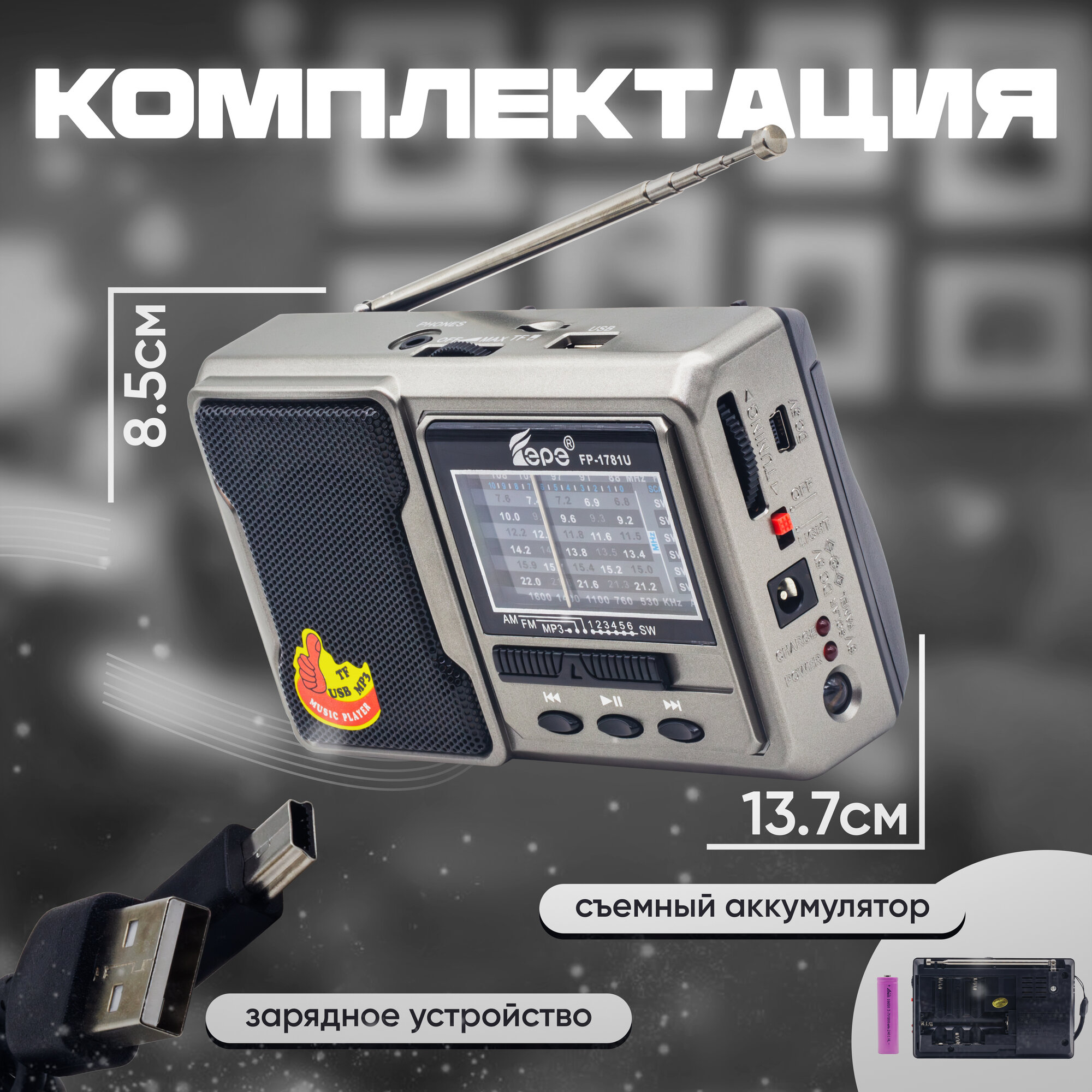 Радиоприемник EPE высокочувствительный AM FM SW с USB MicroSD и MP3 компактный с фонариком информация:
