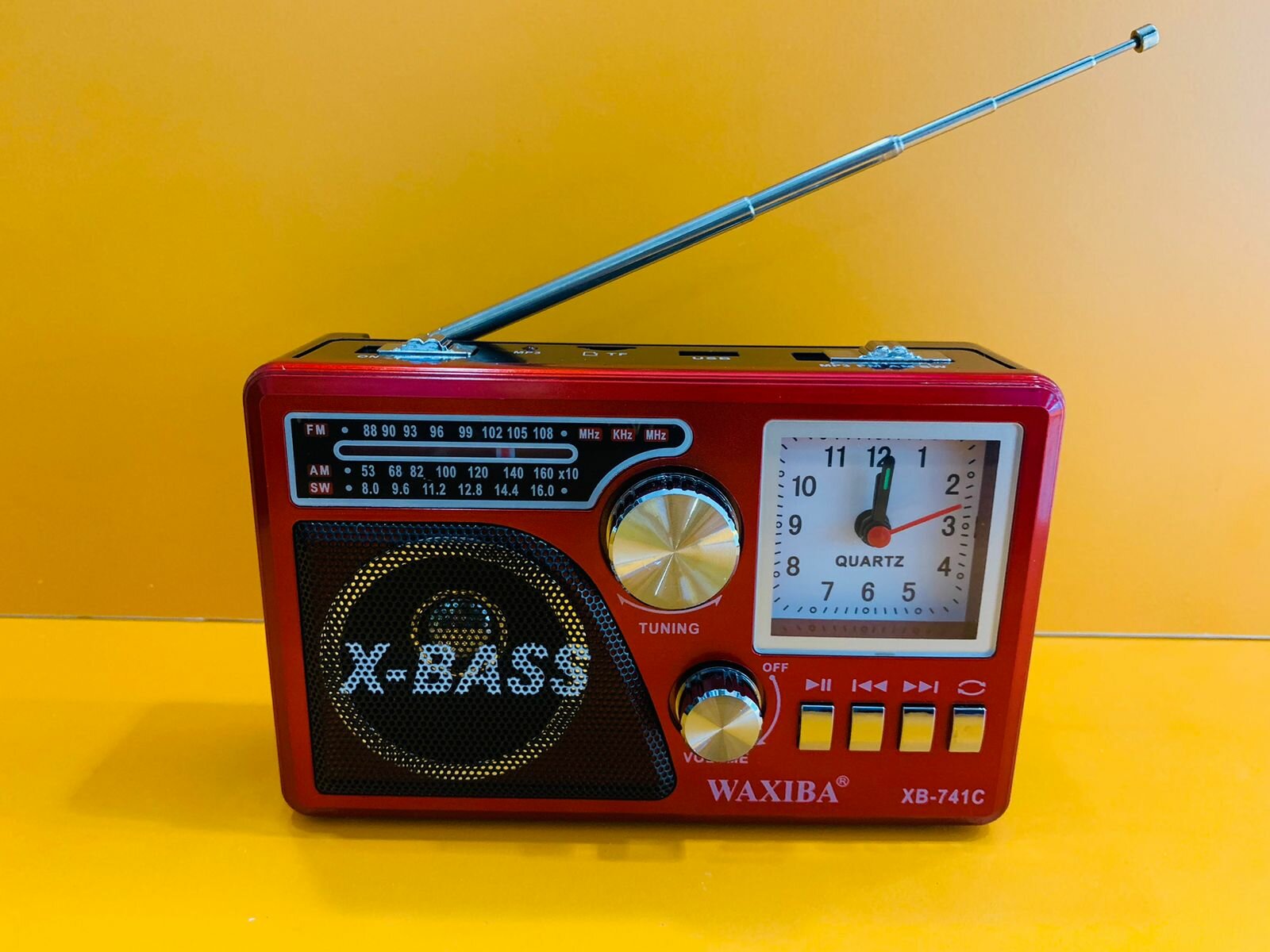 Радиоприемник с кварцевыми часами и фонарем WAXIBA XB-741C red информация: