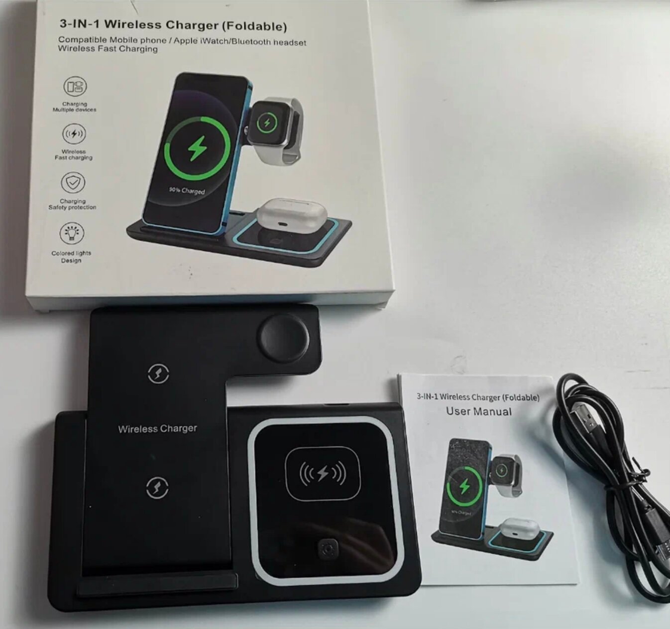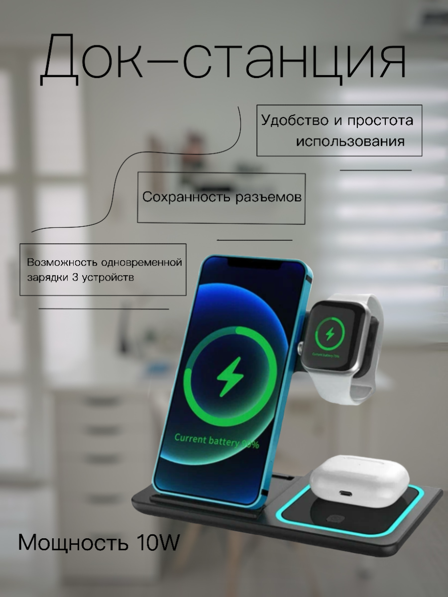 10 цен на Беспроводная зарядная док-станция 3-в-1 Dobro для iPhone, Android и Apple Watch черная