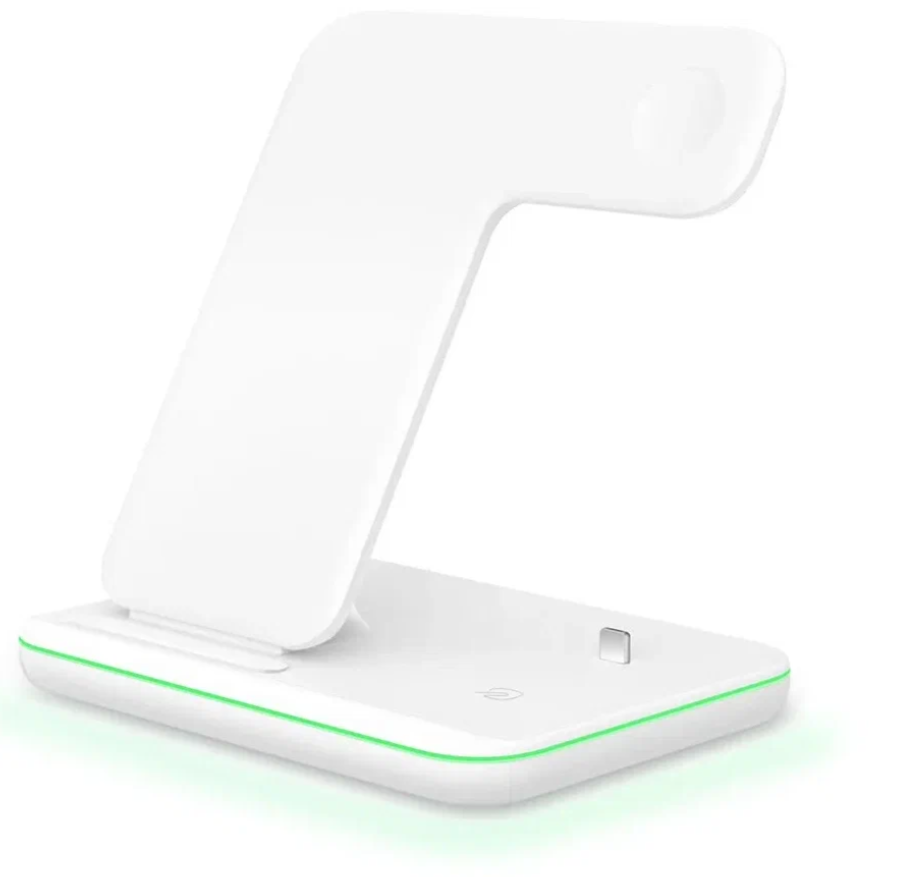 Беспроводная зарядная док-станция 3 в 1 с подсветкой / Быстрая зарядка / Белый информация: