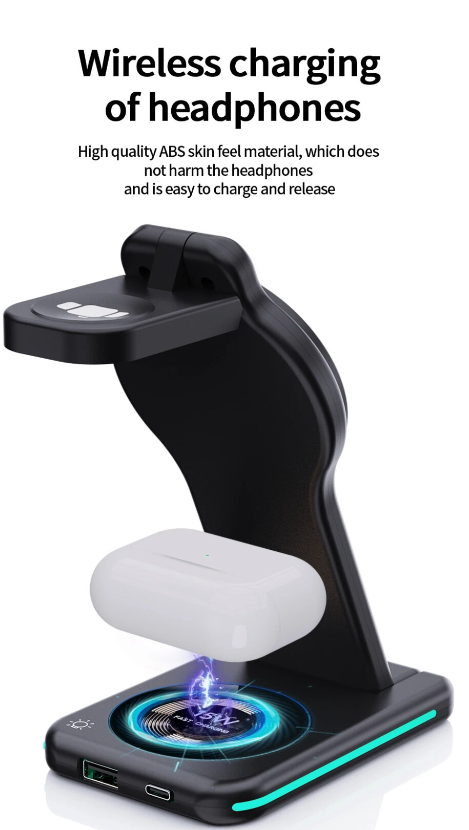 Беспроводная зарядная станция 5 в 1 Rapture MagSafe H-60 (iMageSafe+Apple Watch+AirPods(Смартфон)+USB-A+Ночник), черная информация: