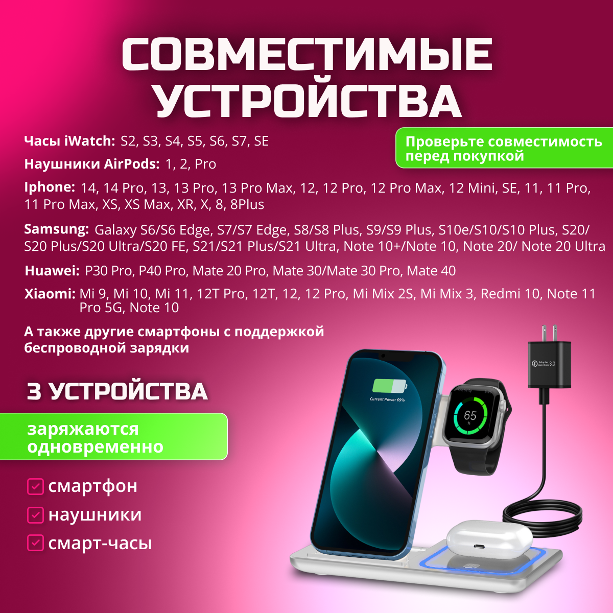 10 цен на Беспроводная зарядка для гаджетов 3 в 1