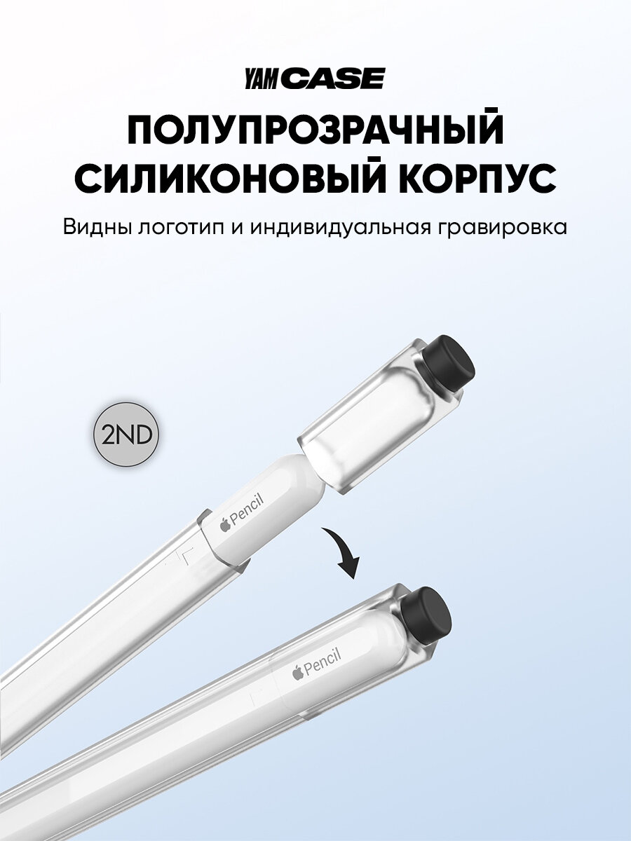 10 цен на Чехол для стилуса Apple Pencil 2 прозрачно-черный силиконовый