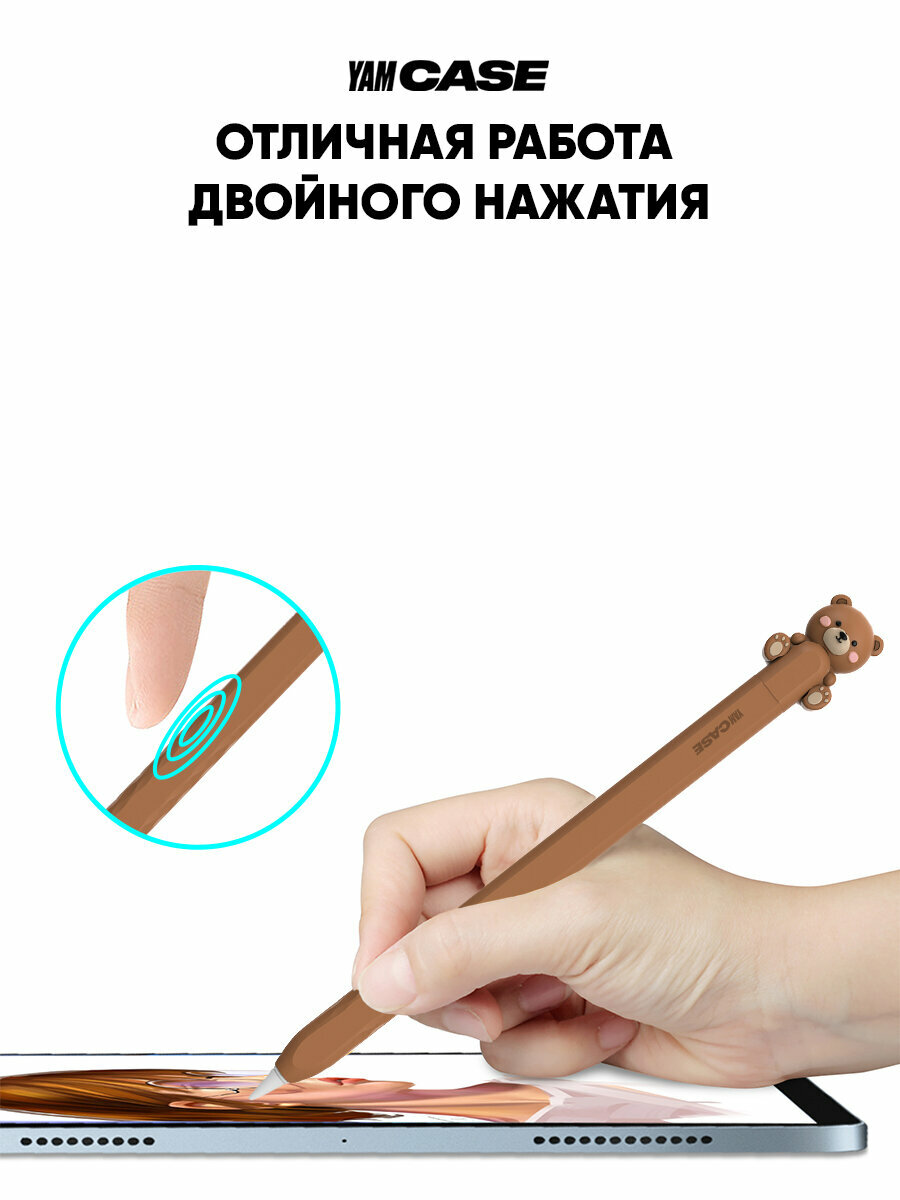 Чехол для стилуса Apple Pencil 2 силиконовый коричневый с медведем информация: