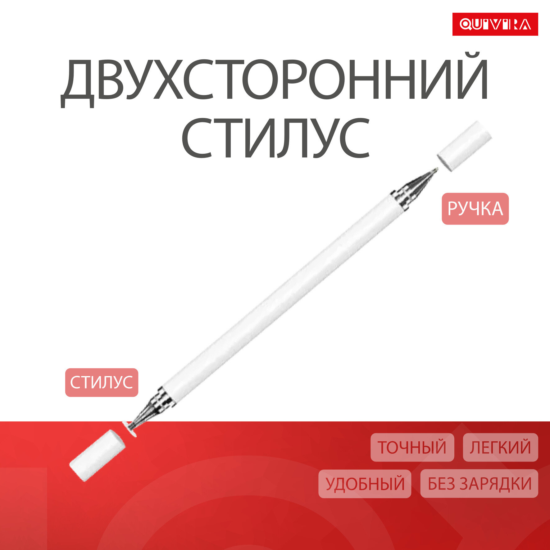 Стилус 2 в 1 белый универсальный для смартфонов Apple iPhone и Android, планшетов iPad, Xiaomi, Huawei, сенсорного экрана ноутбука и телефона информация: